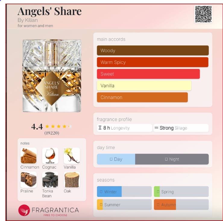 عطر “أنجيلز شير” من باي كيليان عطر شرقي برائحة الفانيليا للنساء والرجال. أُطلق عام ٢٠٢٠. مصمم هذا العطر هو بينوا لابوزا. مكوناته العليا هي الكونياك، والمكونات الوسطى هي القرفة، وحبوب التونكا، والبلوط، والهيديون، والمكونات الأساسية هي الفانيليا، والبرالين، وخشب الصندل، واللوز المسكر.