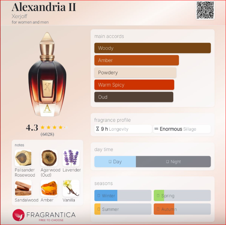 عطر “إسكندرية ٢” من زيرجوف عطر شرقي خشبي للنساء والرجال. أُطلق عام ٢٠١٢. مُصمم العطر هو كريس موريس. مكوناته العليا هي خشب الورد من باليساندر، والخزامى، والقرفة، والتفاح؛ مكوناته الوسطى هي الورد، والأرز، وزنبق الوادي؛ مكوناته الأساسية هي العود، وخشب الصندل، والعنبر، والفانيليا، والمسك.